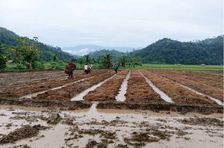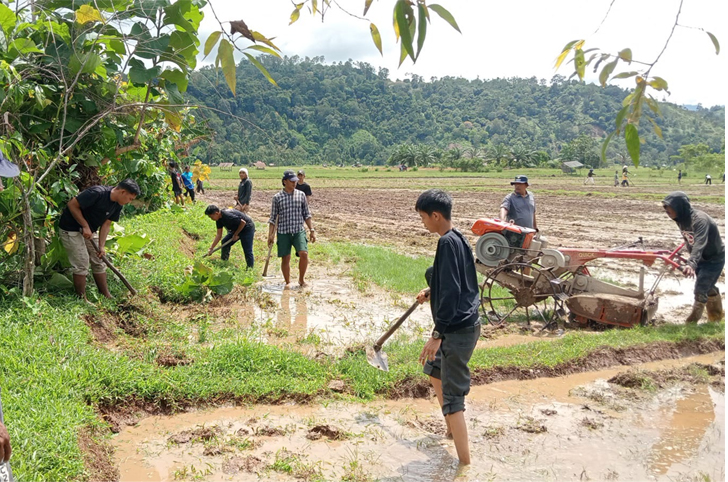 Antusiasme peserta terlihat jelas. Para petani muda bekerja cepat dan kompak membuat bedengan selebar 1,5 meter dengan jarak antarbedengan 30–40 cm, lalu menutupnya dengan jerami sebagai persiapan penanaman padi.
